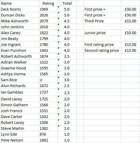 Duncan Dicks 4/5 - 2nd= £6 prize
