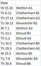 Division 1Division 2Division 3Division 4North Gloucestershire Individual ChampionshipFor this year’s Individual Championship players have the option of choosing to play their games at one of two alternative venues for each round, or to arrange to play at an alternative date/venue by mutual agreement. A&B indicate the two alternative venues for any given round.